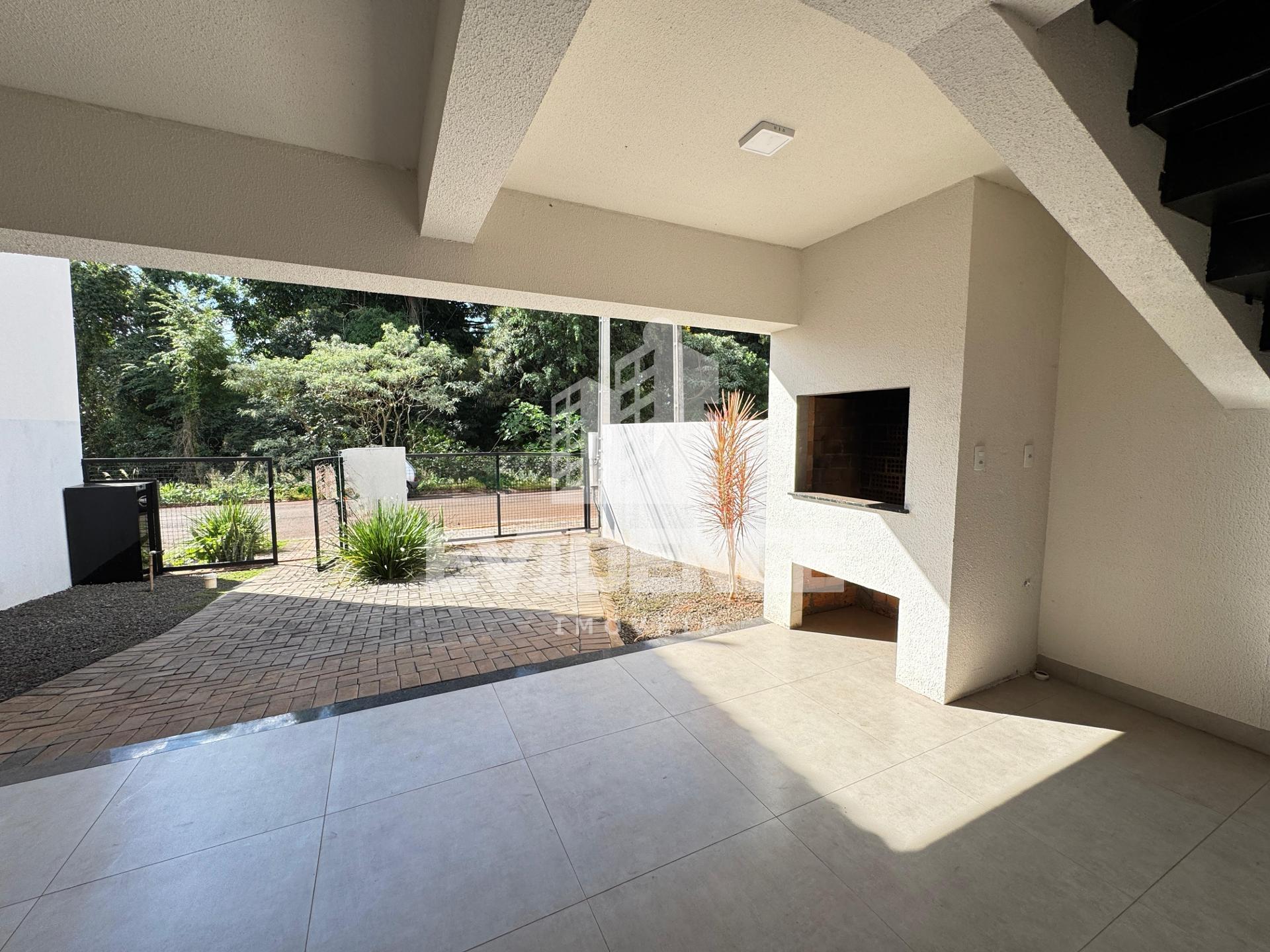 Piso Inferior: Garagem coberta para 02 carros, churrasqueira, lavabo.